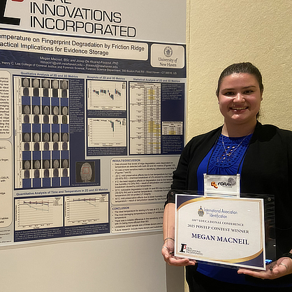 Megan MacNeil ’25, ’27 M.S. built on her honors thesis to earn top honors at the International Association for Identification Conference for her fingerprint degradation research.